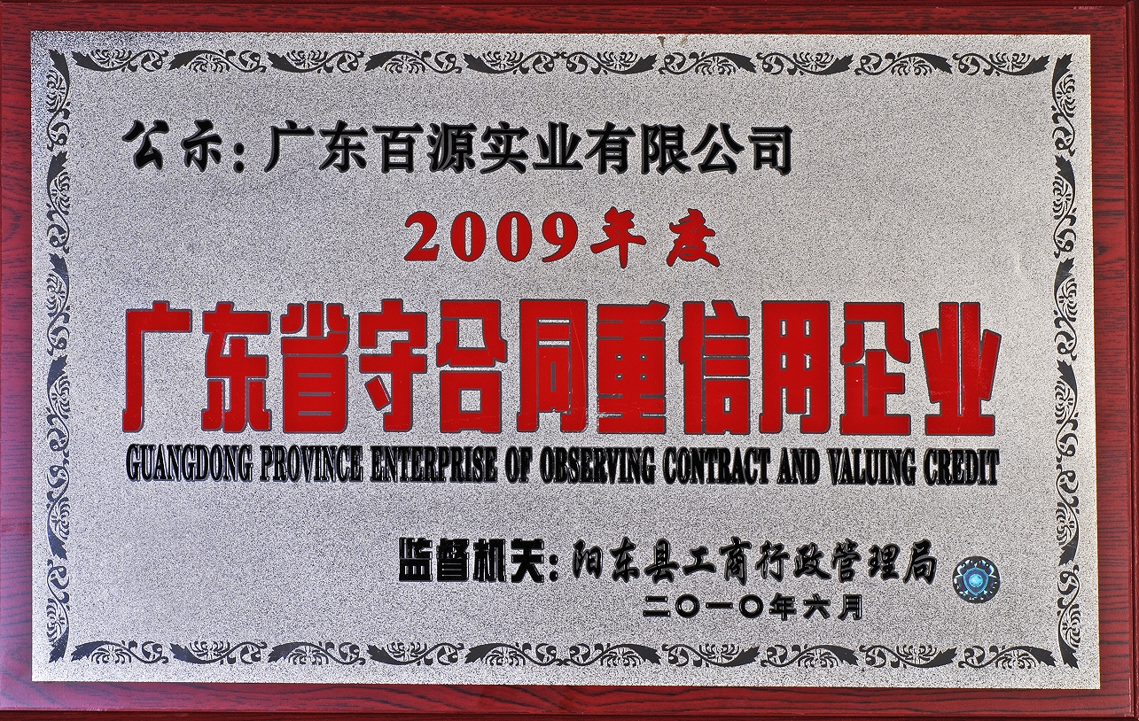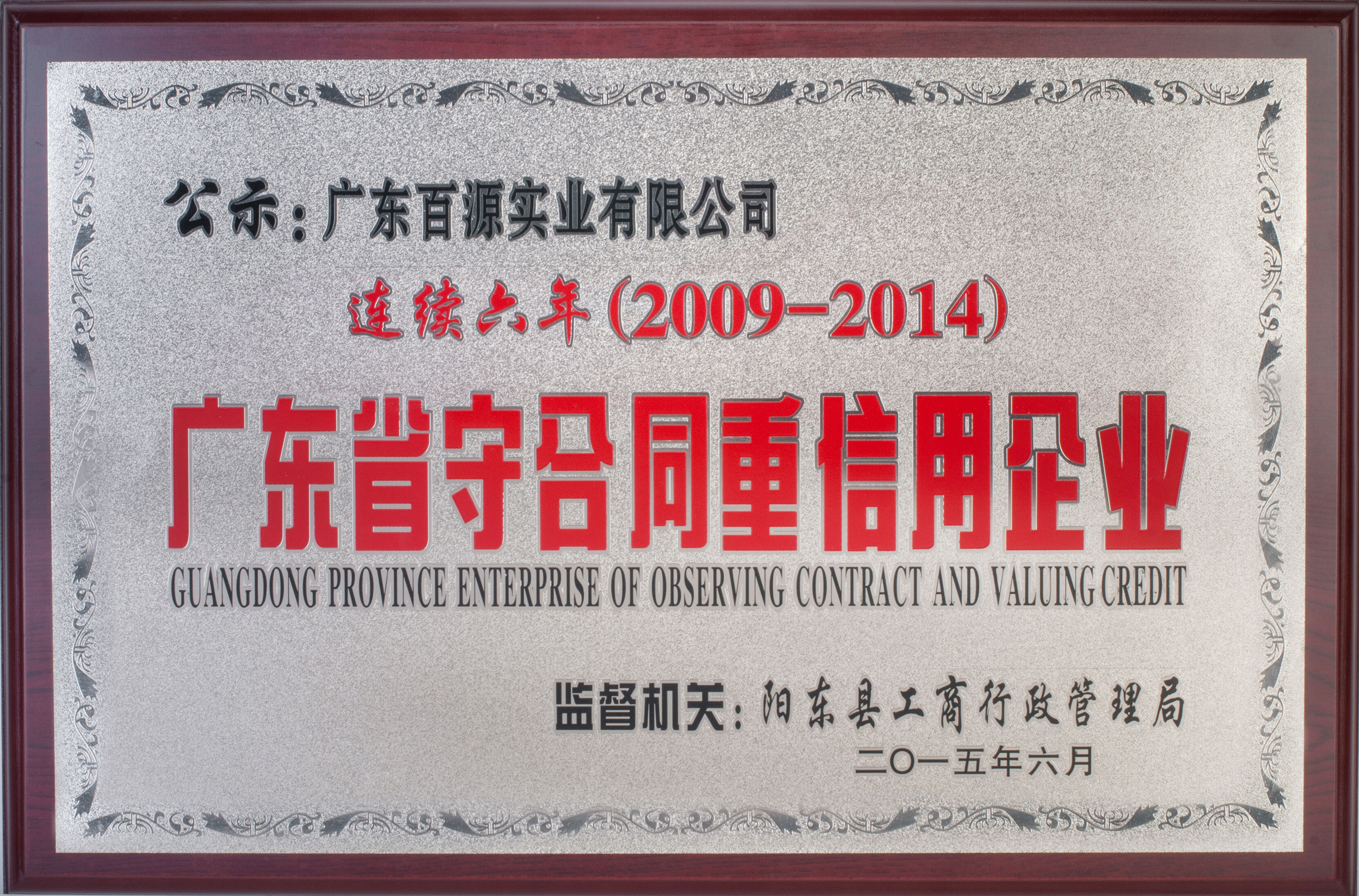 連續(xù)六年廣東省守合同重信用企業(yè)-百源