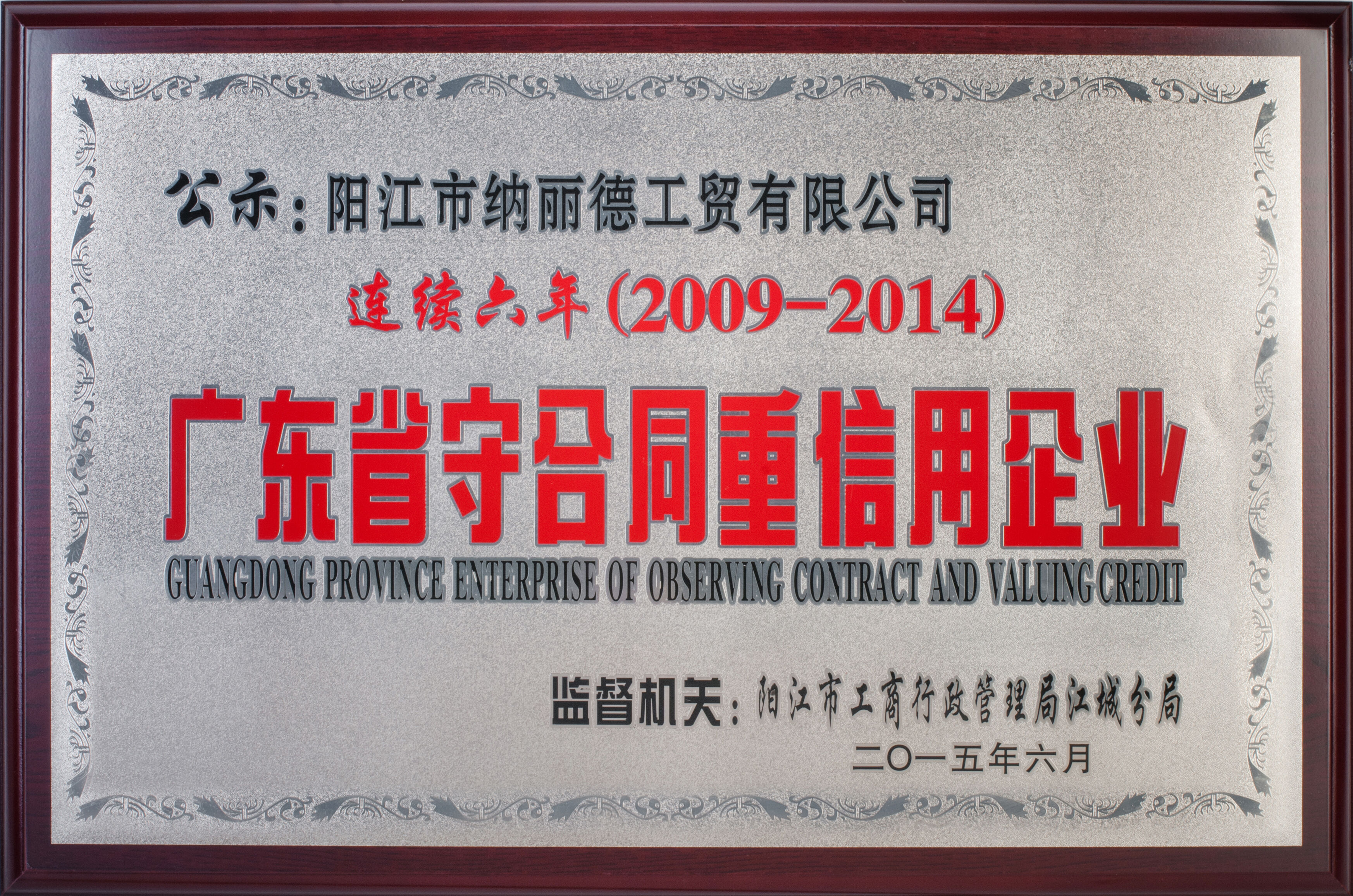 連續(xù)六年廣東省守合同重信用企業(yè)-納麗德