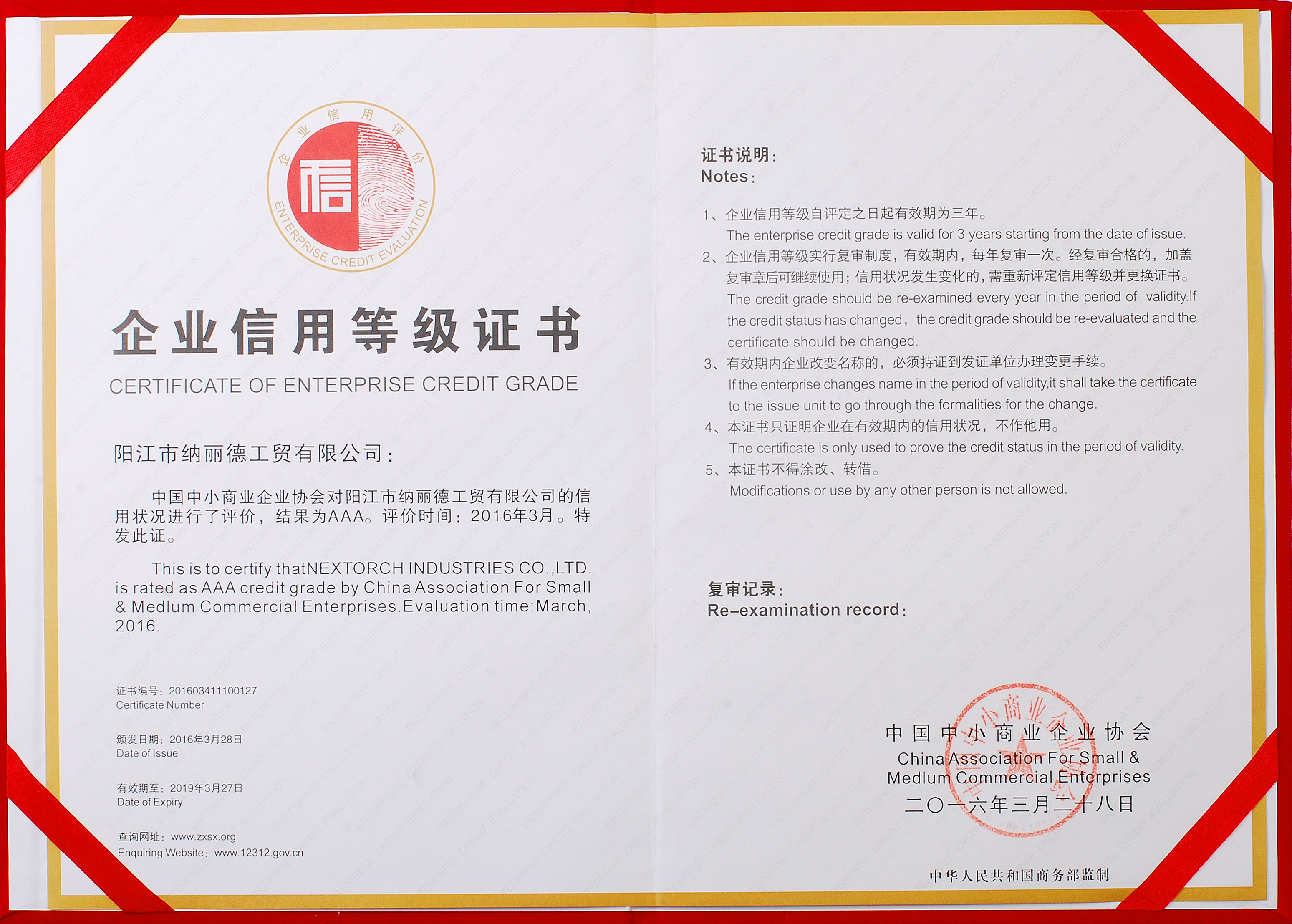 企業(yè)信用等級(jí)評(píng)價(jià)(AAA級(jí))