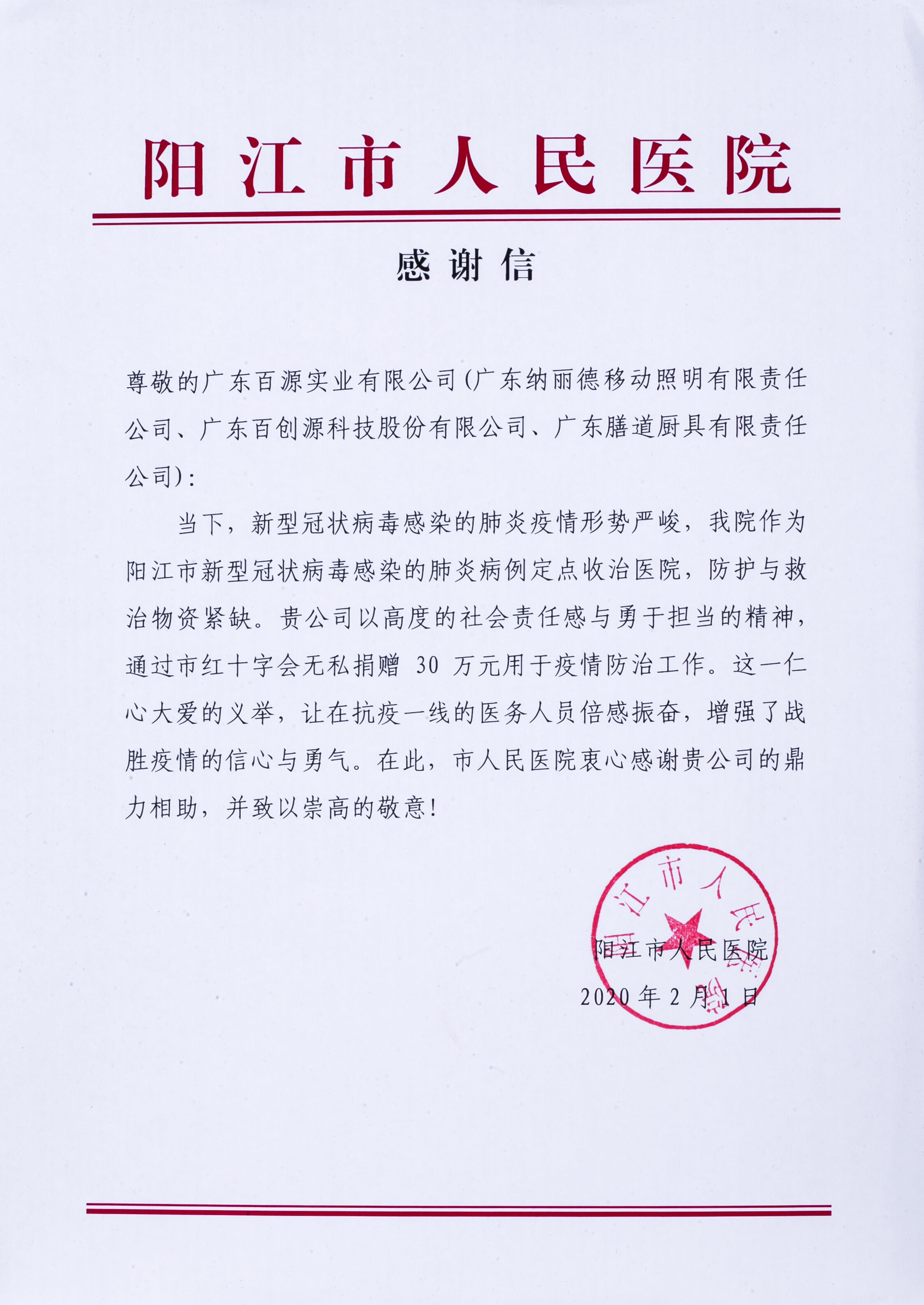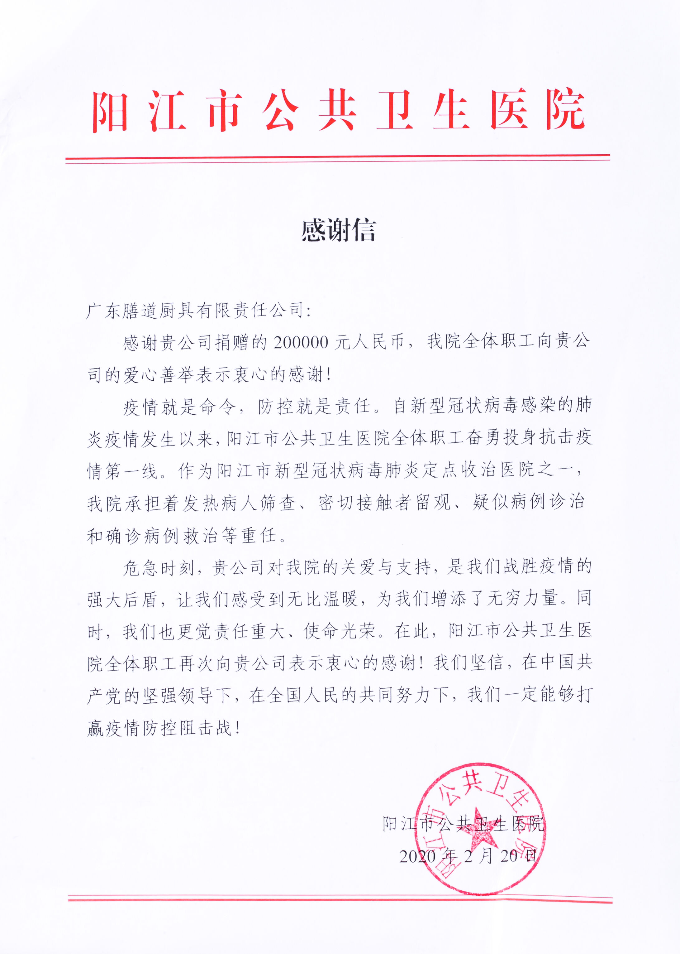 感謝信(陽江市公共衛(wèi)生醫(yī)院)