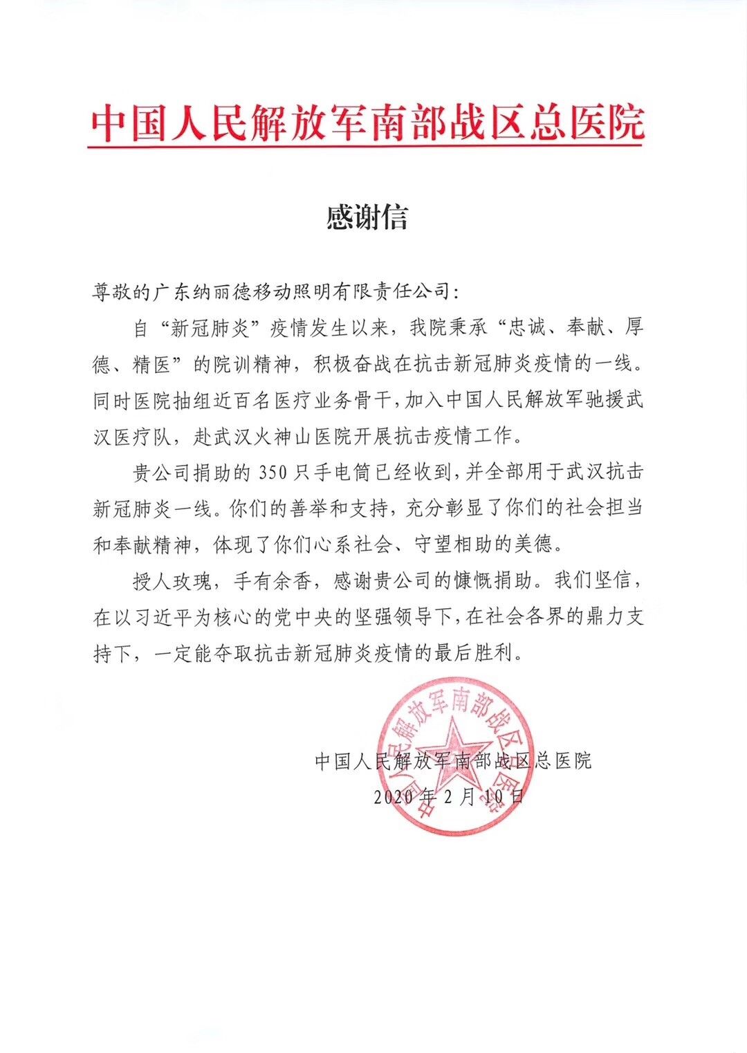 感謝信(中國(guó)人民解放軍南部戰(zhàn)區(qū)總醫(yī)院)